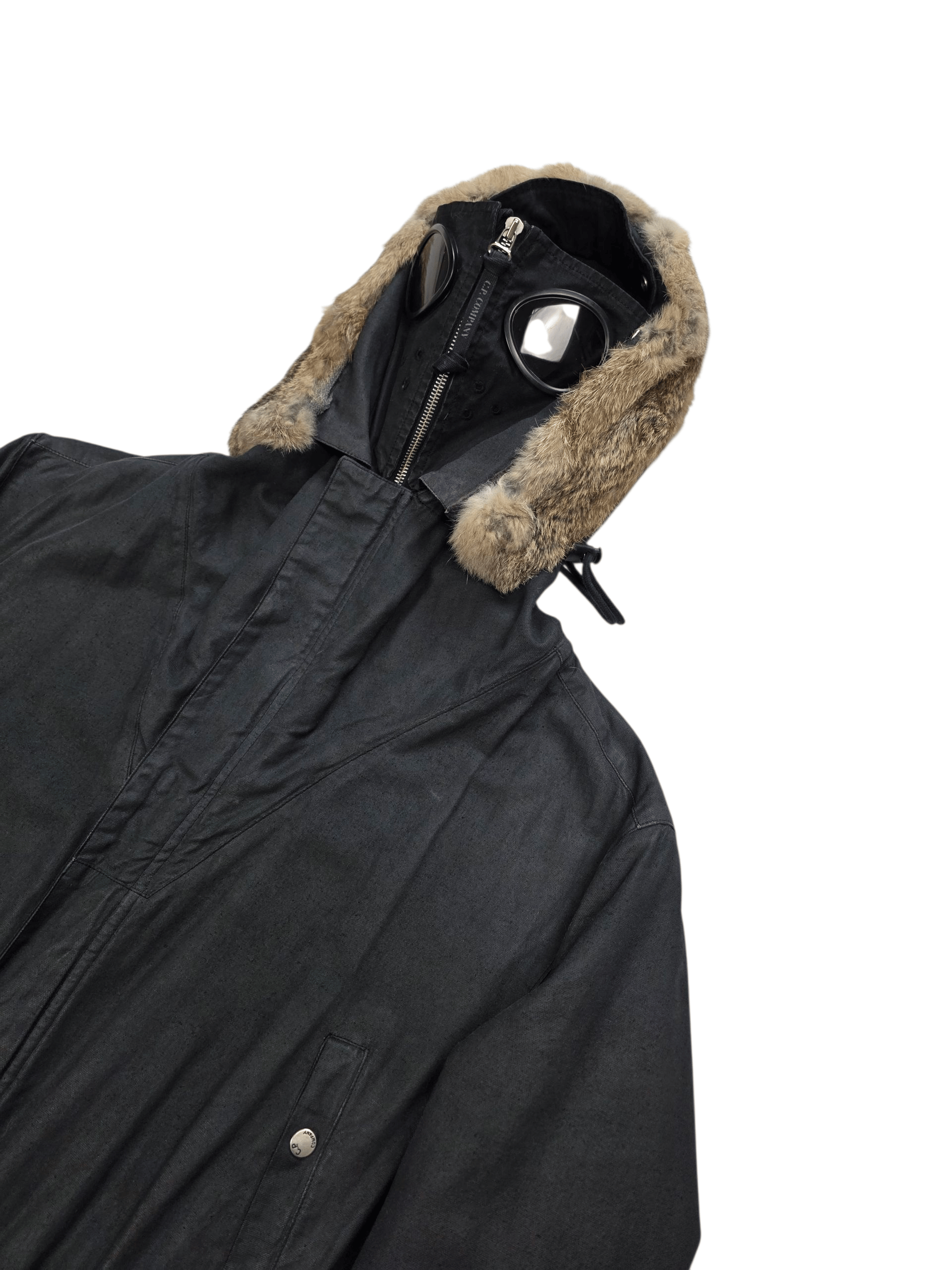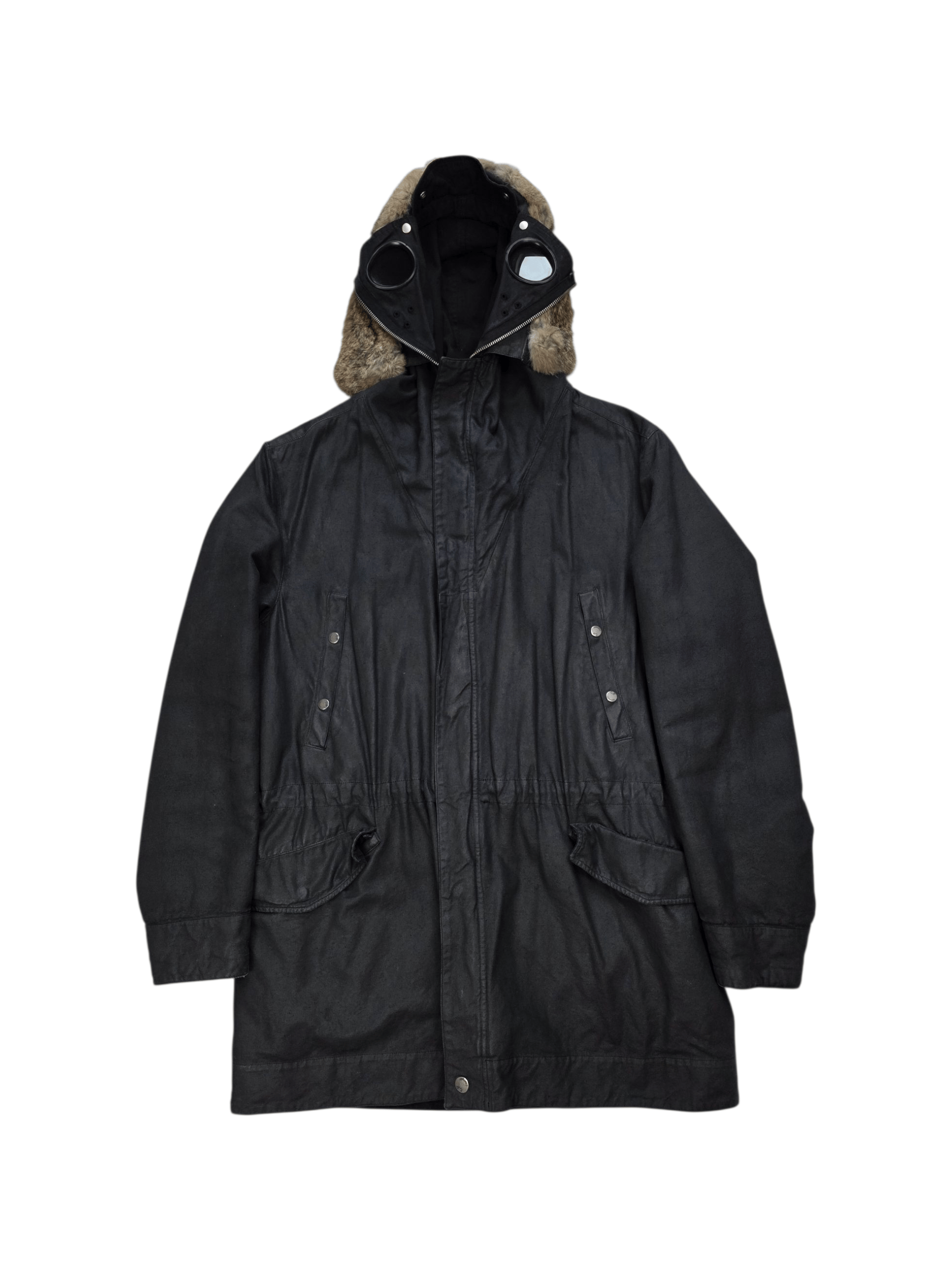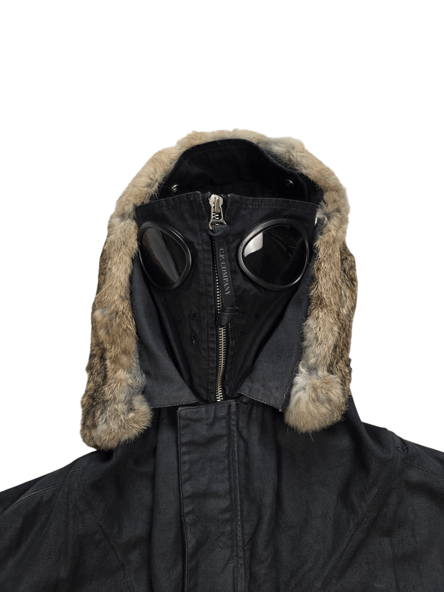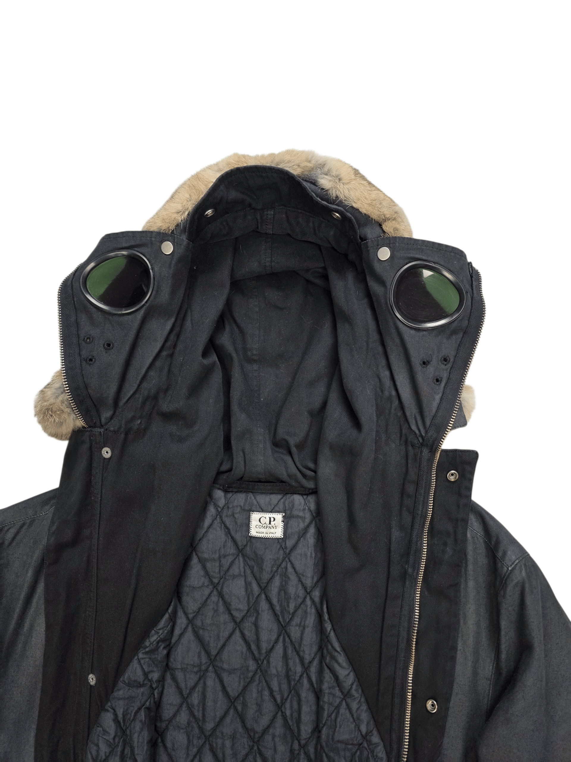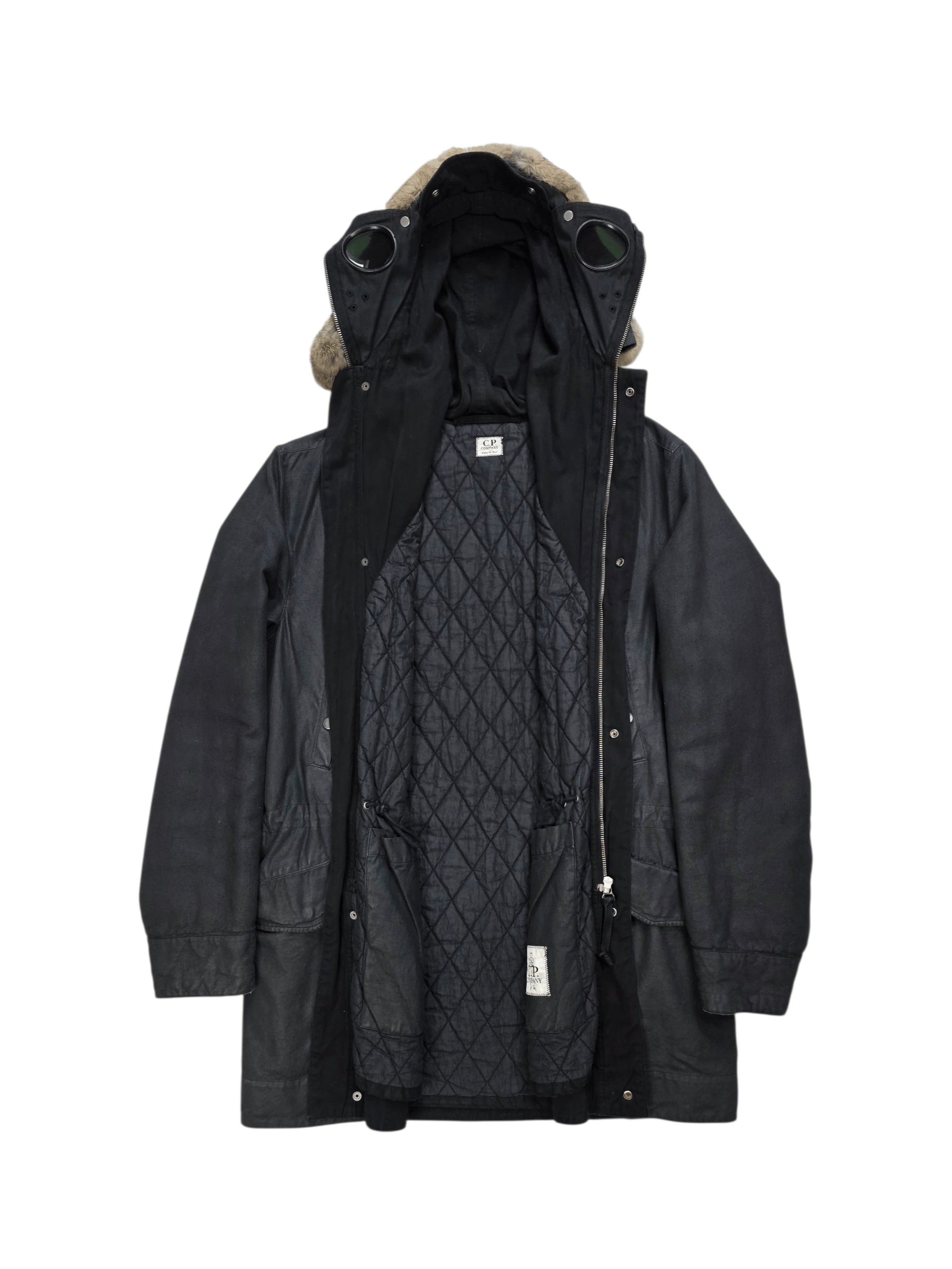 CP Company Vintage Explorer Parka with a water-resistant finish. Features a fur lined explorer hood with removable goggles for classic functionality and style.