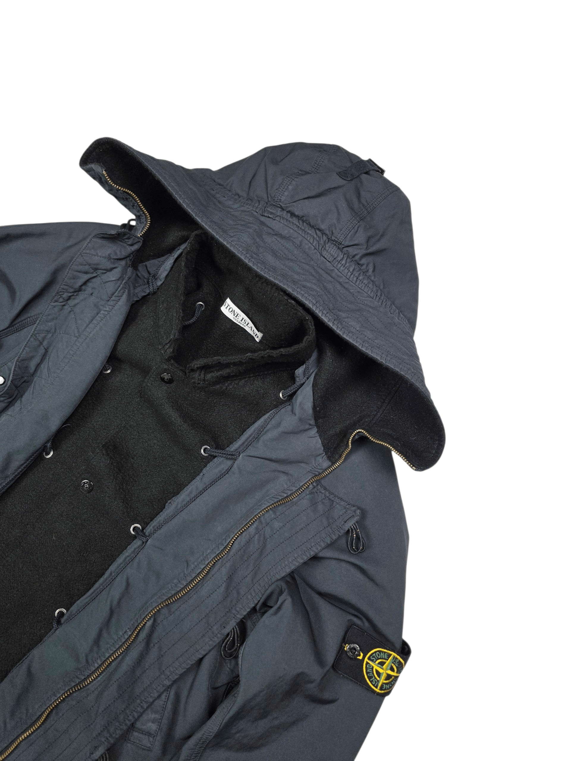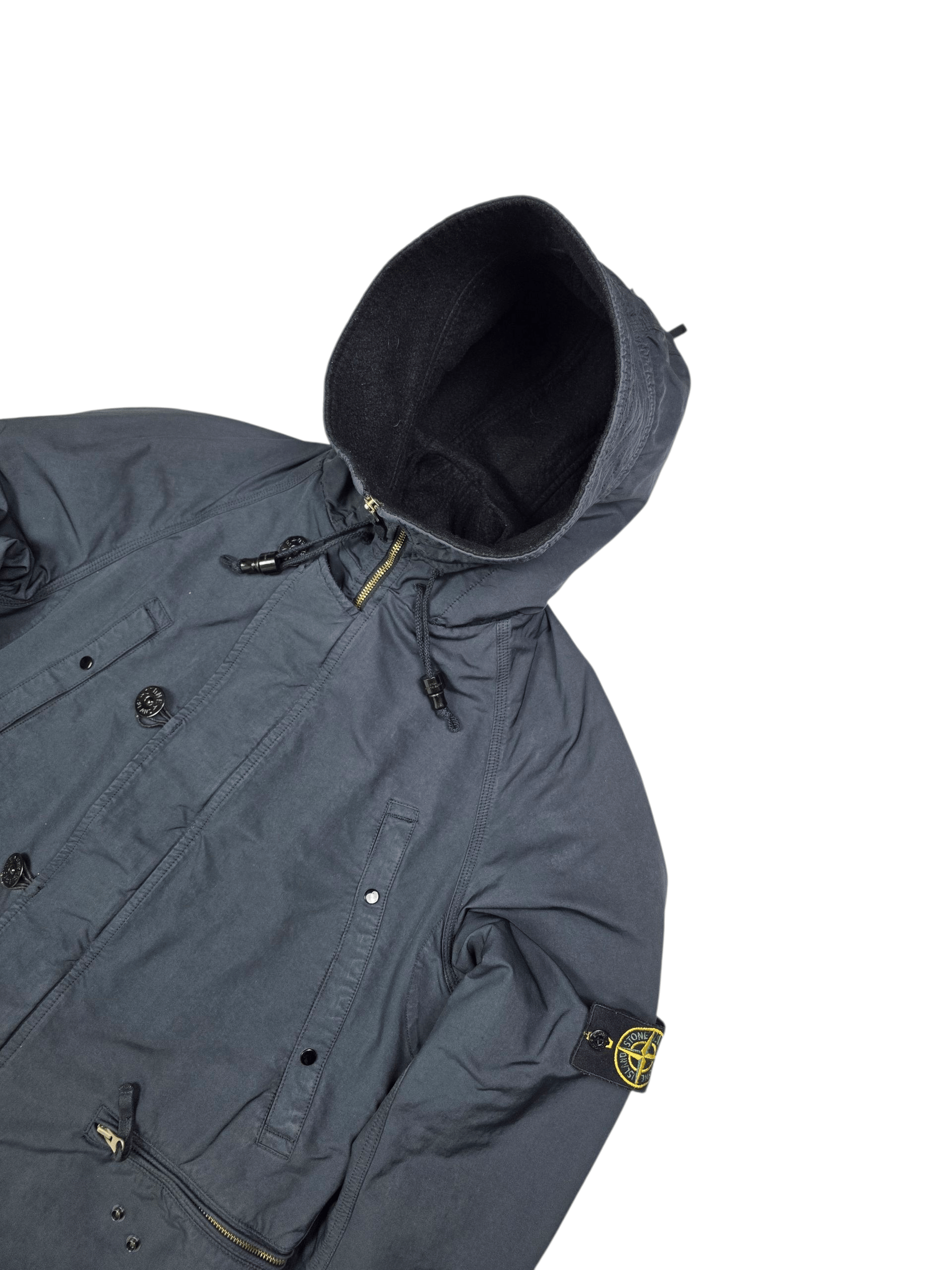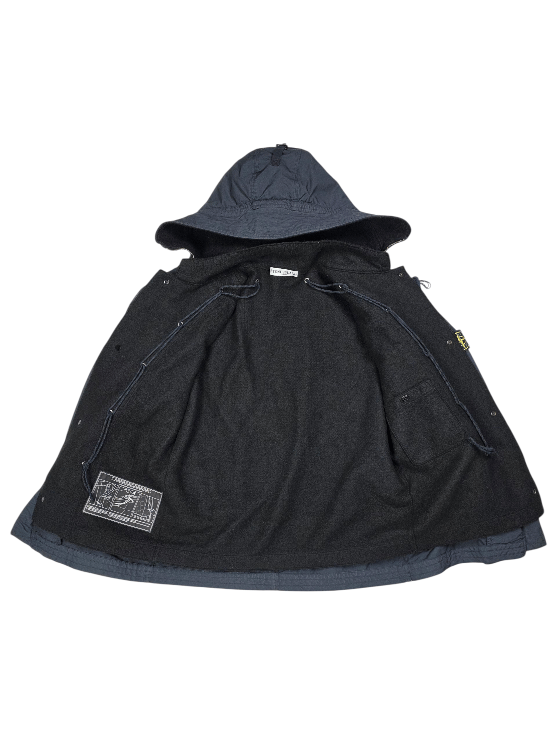 Beautiful Stone Island Dual layer parka, featuring a removable mottled wool liner, multiple functional pockets, and heavy metal zips.