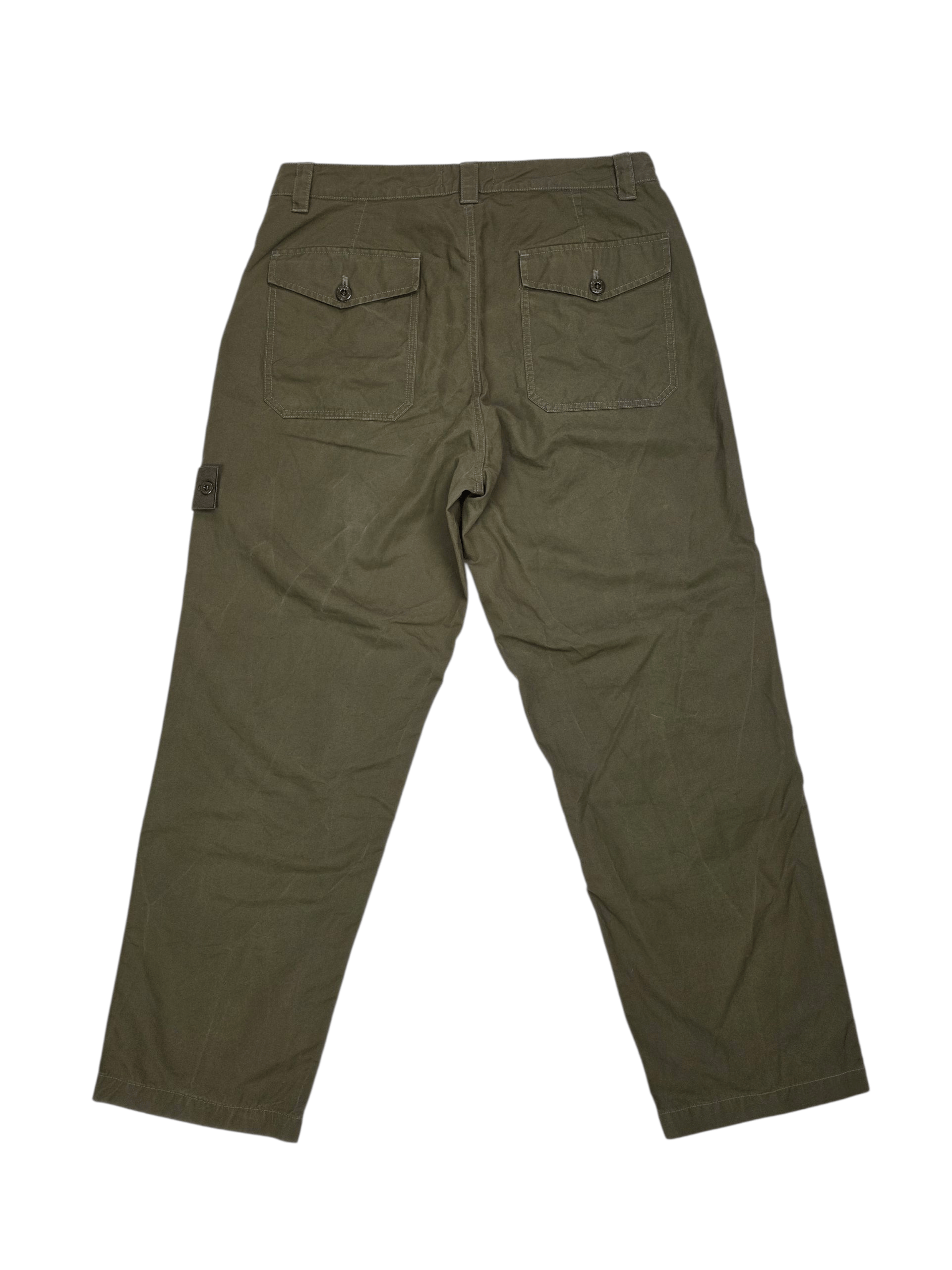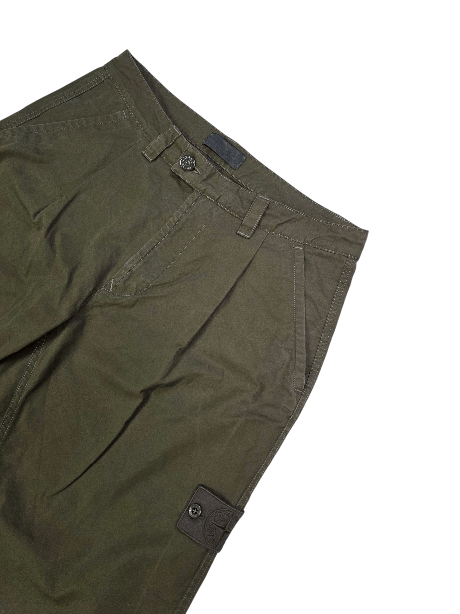 Stone Island Ghost Ventile Pleated Pants in black combine minimal design with technical performance. Made from water repellent Ventile cotton, they feature crisp front pleats, a zip fly with button closure, and a detachable Khaki Green compass logo patch for a refined, utilitarian look.