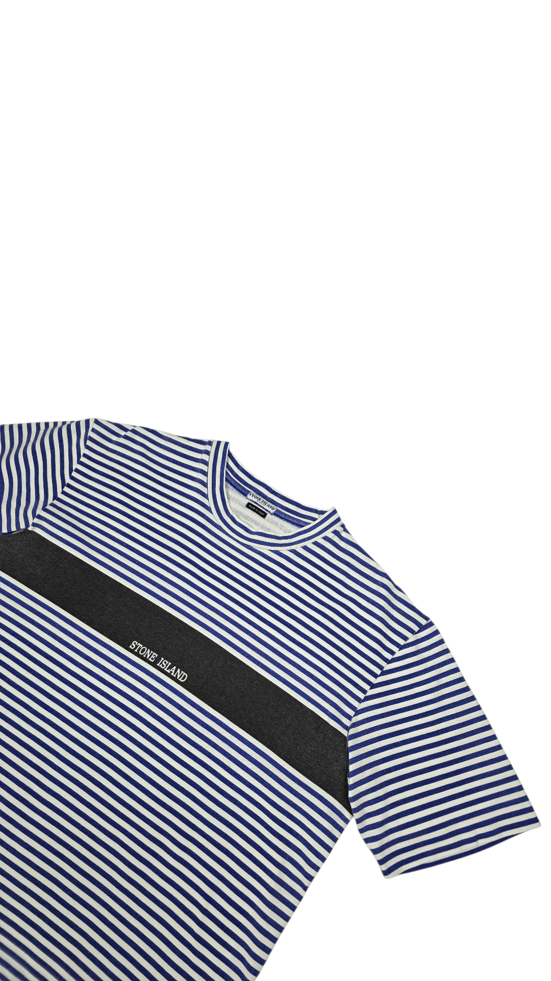 Stone Island thick cotton striped tshirt. Featuring a Stone Island spellout logo to the front.